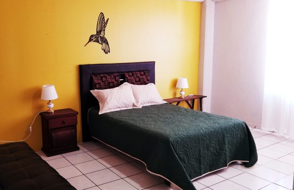 con una cama matrimonial que puede alojar cómodamente a dos personas, además de 1 sofa cama para una persona más.
